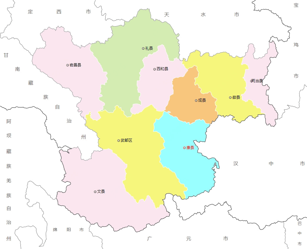 甘肅省隴南市管轄了9個(gè)縣級(jí)行政區(qū),它們是:武都區(qū)、康縣、文縣、成縣、徽縣、兩當(dāng)縣、西和縣、禮縣、宕昌縣。