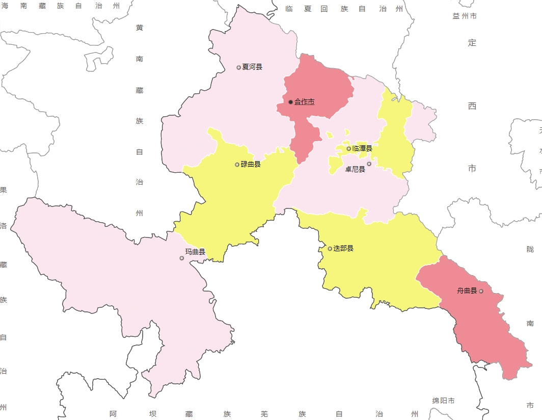甘肅省甘南州管轄了合作市、臨潭縣、卓尼縣、舟曲縣、迭部縣、瑪曲縣、碌曲縣、夏河縣。