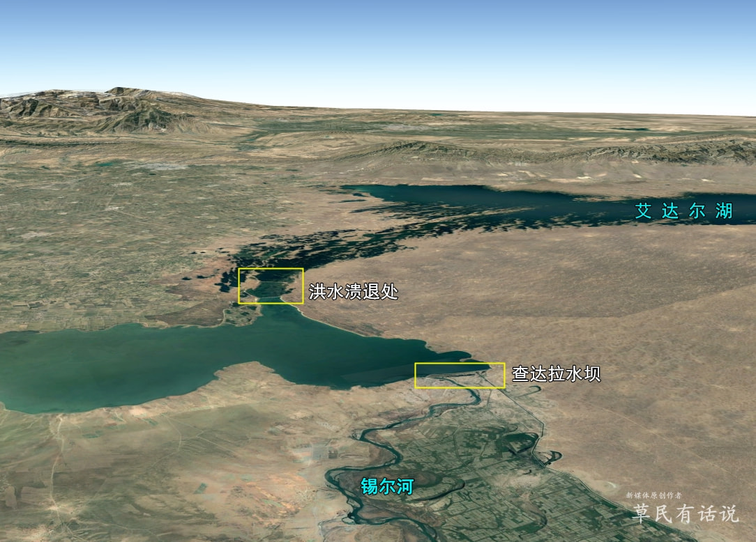 在此后約的一年多時間里,查達(dá)拉大壩內(nèi)的水始終與阿納賽低地相互貫通,最終河水填滿了這個低洼地帶,硬生生在中亞地區(qū)制造了一個新的巨型淡水湖泊-艾達(dá)爾湖。