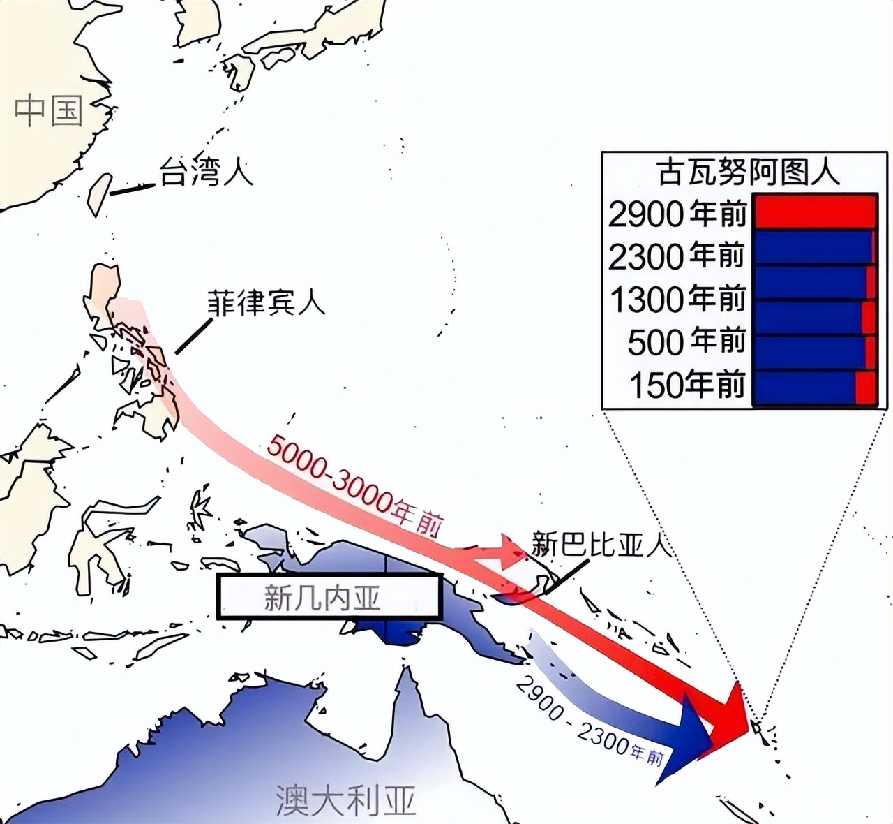 根據一份古代湯加人的DNA顯示,首批湯加和瓦努阿圖人來自亞洲移民。通過對湯加和瓦努阿圖最古老的墓園中的遺骸進行DNA比對,他們擁有中國南方人的DNA。人們做了一個推測,在8000年前,一群中國南方和臺灣地區的移民,先向南到達了東南亞地區,然后進一步向太平洋諸島遷徙,當他們來到湯加和瓦努阿圖時,發現這里是一片無主之地,最終決定定居于此。