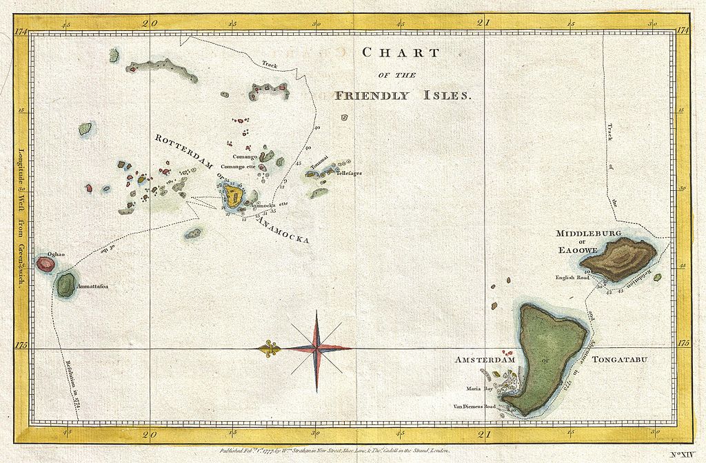 鑒于湯加人的熱情,以及雙方的“友誼”,1777年的第三次探險,庫克船長再次造訪湯加,花費2個月的時間對湯加群島進行了一場仔細探索,并繪制了一份詳細的湯加地圖,直到近代都在使用這份地圖。