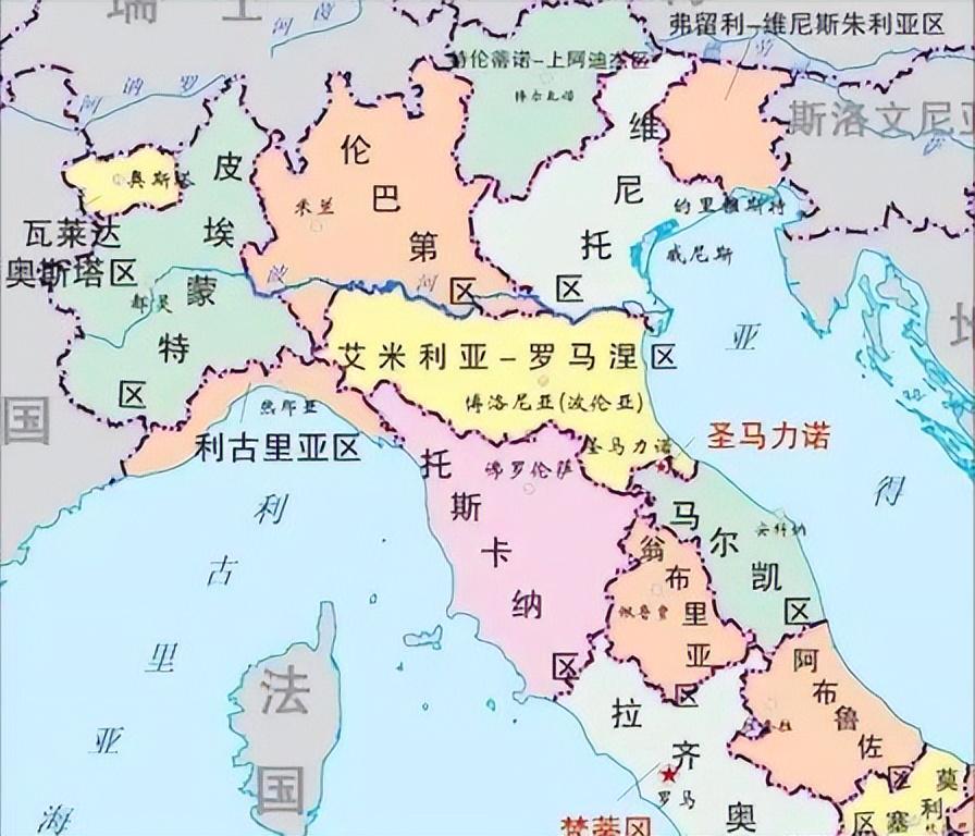 圣馬力諾是一個(gè)國(guó)中國(guó)(被意大利包圍),也是一個(gè)袖珍國(guó),它的一級(jí)行政區(qū)相當(dāng)于中國(guó)的縣。