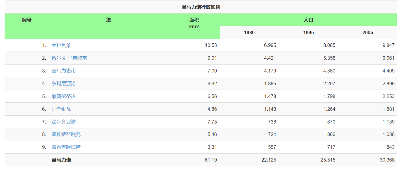 因此,圣馬力諾并非直轄市鎮(zhèn):全國(guó)分9個(gè)區(qū)(相當(dāng)于中國(guó)的縣),在這個(gè)區(qū)(縣)下面再管市鎮(zhèn)。
