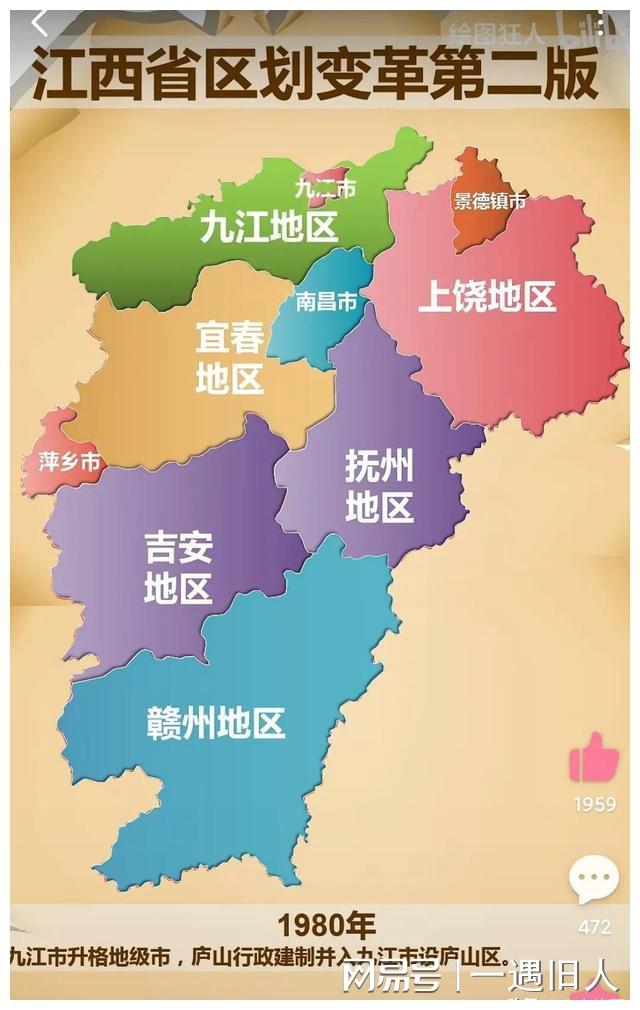1980年各地市稱為地區,同時九江升格為地級市,廬山設為廬山區。