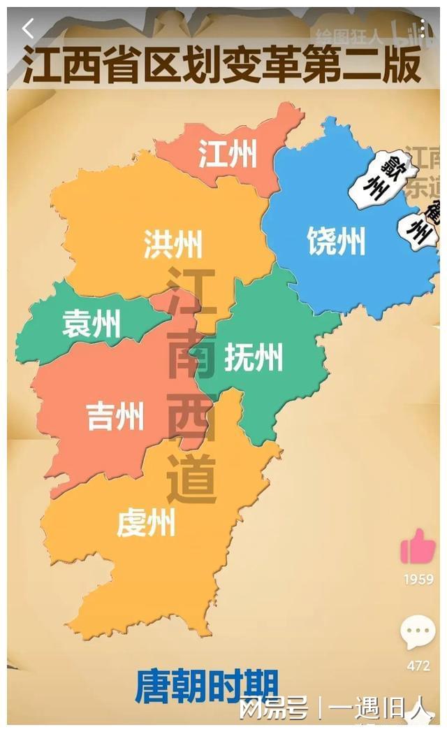 唐朝時期江西始稱江南西道,行政區劃和今天的地級市變化不大,只是贛州稱虔州