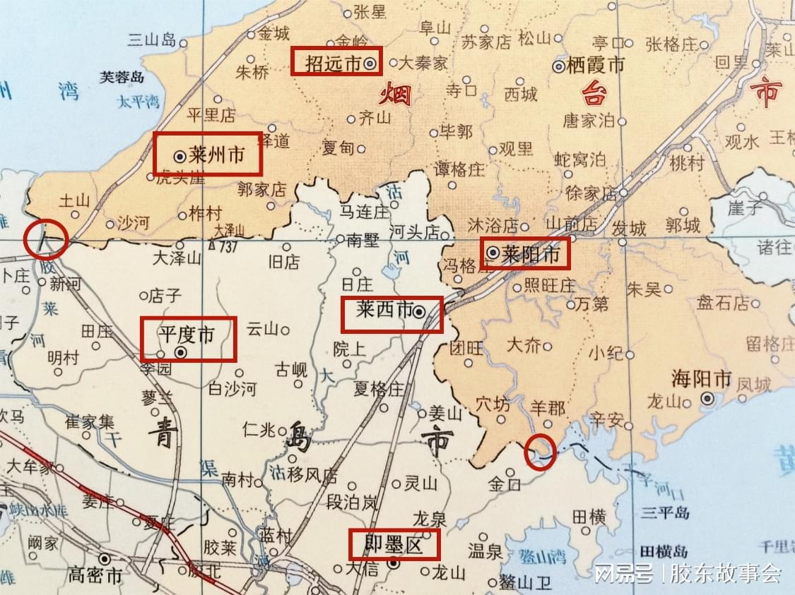具體而言,這段交界線兩側共有六個縣市區,青島一側分別是平度、萊西、即墨,煙臺一側分別是萊州、招遠、萊陽。換句話說,青島和煙臺之間的市際交界線是由“平度-萊州”“萊西-萊州”“萊西-招遠”“萊西-萊陽”“即墨-萊陽”這五段縣際交界線所構成的。