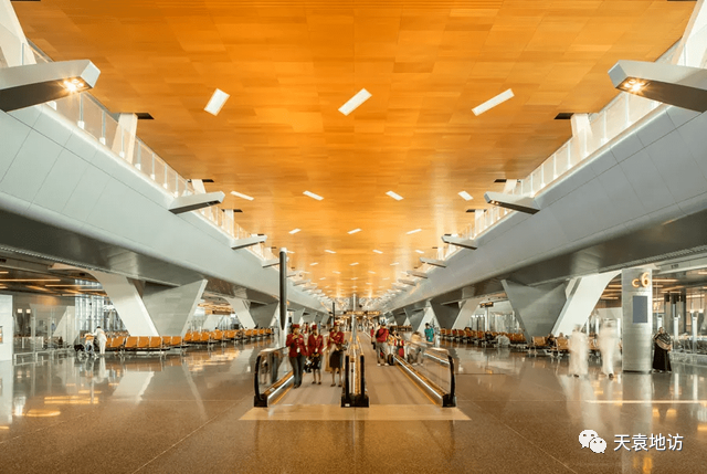多哈哈馬德機場有著占地約60萬平方米的航站樓,是世界上第一個專門為世界上最大的客運飛機空中客車A380-800雙層“巨無霸”設計的機場,擁有世界上最長的機場跑道(2.64英里)。這座引人注目的、彎曲的建筑輪廓讓人聯想起海浪和沙丘,從而投射出卡塔爾通往世界大門的強有力的形象,為游客提供了一種極為高效且宜人的體驗,強調了卡塔爾人熱情好客的特性,給游客留下了這個國家壯觀而持久的印象。