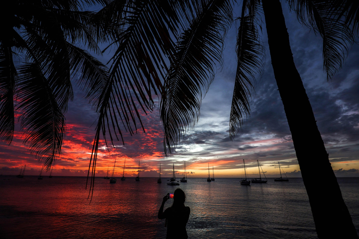 11月24日,一名女子在加勒比地區(qū)法屬馬提尼克島的海邊拍攝黃昏景色。新華社/法新
