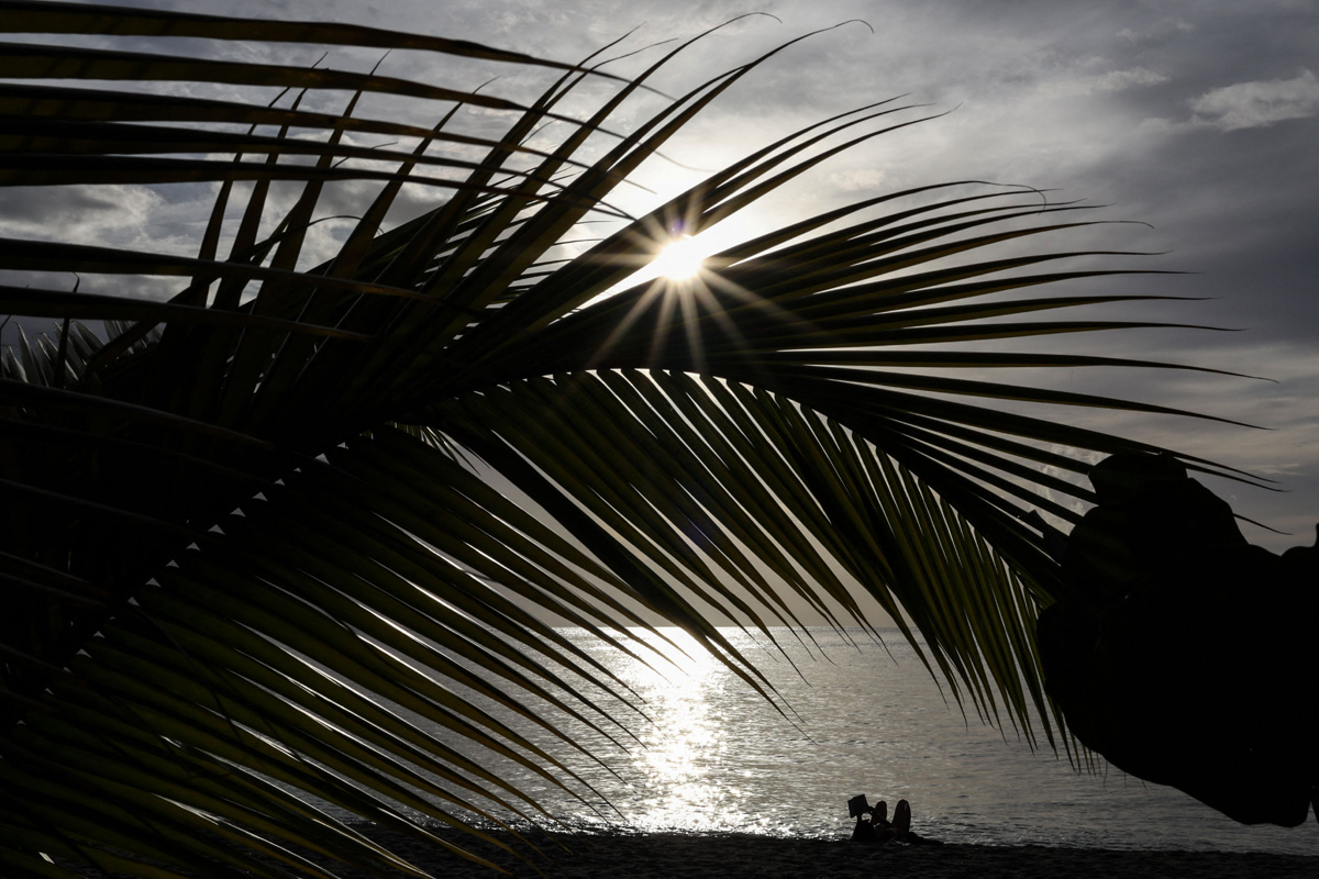 11月24日傍晚,人們站在加勒比地區(qū)法屬馬提尼克島的海邊。新華社/法新