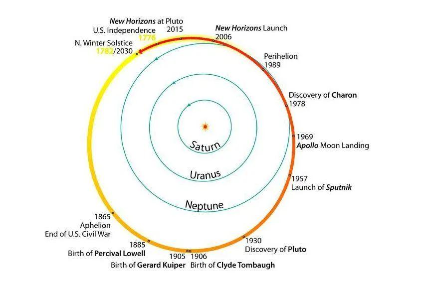 以往美國的所有歷史,都發(fā)生在冥王星的一個(gè)公轉(zhuǎn)周期內(nèi)(247.94 年),美國歷史246年。