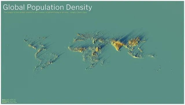 全球人口密度圖,加拿大和澳大利亞這兩個(gè)大家伙,消失了…