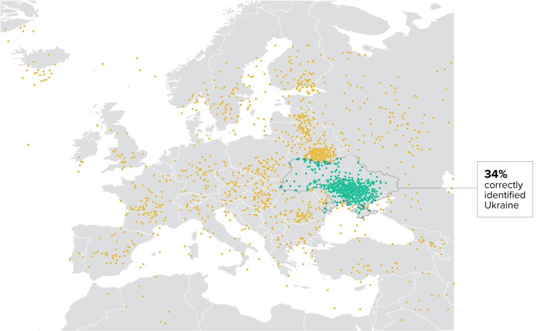 眾所周知,美國人地理水平特別差,但是差到了什么地步呢?這是俄烏沖突前,美國一個(gè)網(wǎng)站做的調(diào)查:讓登記選民在世界地圖上指出烏克蘭的位置,只有34% 的美國人可以在地圖上找到烏克蘭。