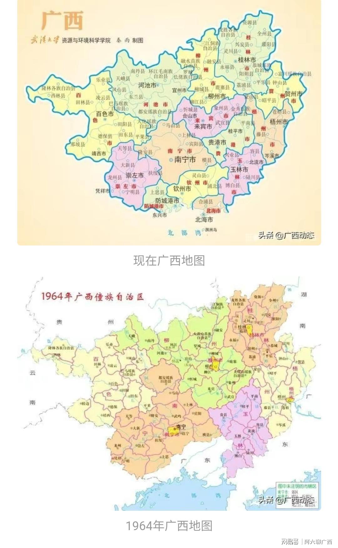 廣西兩幅地圖,現在的和1964年的有什么不同?