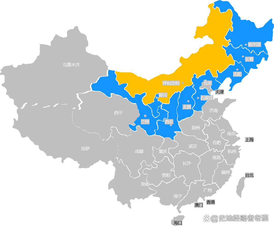 與內(nèi)蒙古相鄰的省份(藍(lán)色部分)