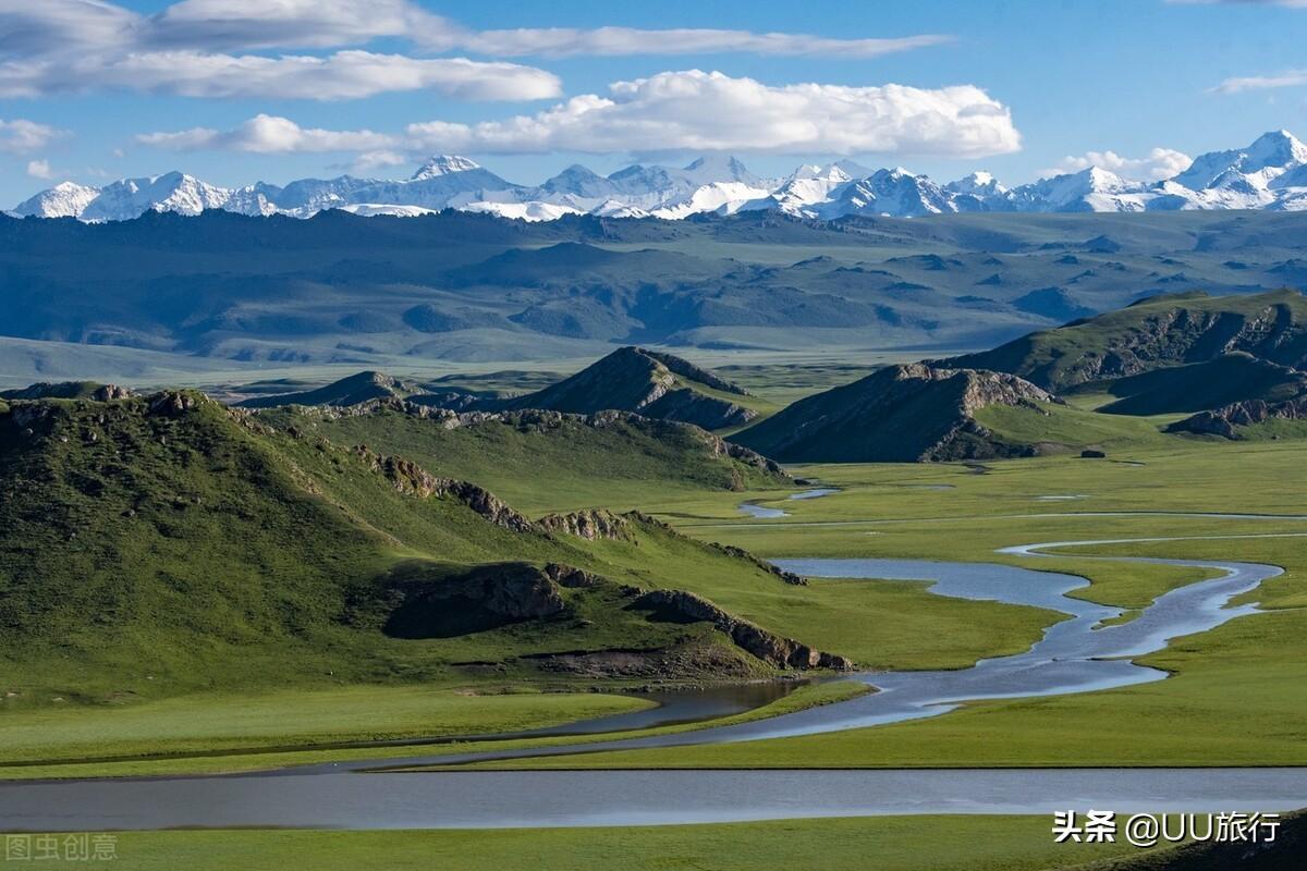 巴音郭楞的自然景觀,由北向南,依次是草原、沙漠、無人區,從生機盎然到生存惡劣,越往南越荒涼。首先是最北端的草原景觀,我們熟知的中國第二大草原巴音布魯克,從天山山地一直延伸至九曲十八彎的開都河,地形從立體的坡地草原到平整的濕地草原。雪山延綿,河流婉轉,是非常適合露營的夏季草原。巴音布魯克往西可以去往伊犁河谷,那拉提、喀拉峻和瓊庫什臺,又是另一番別樣的草原景觀。