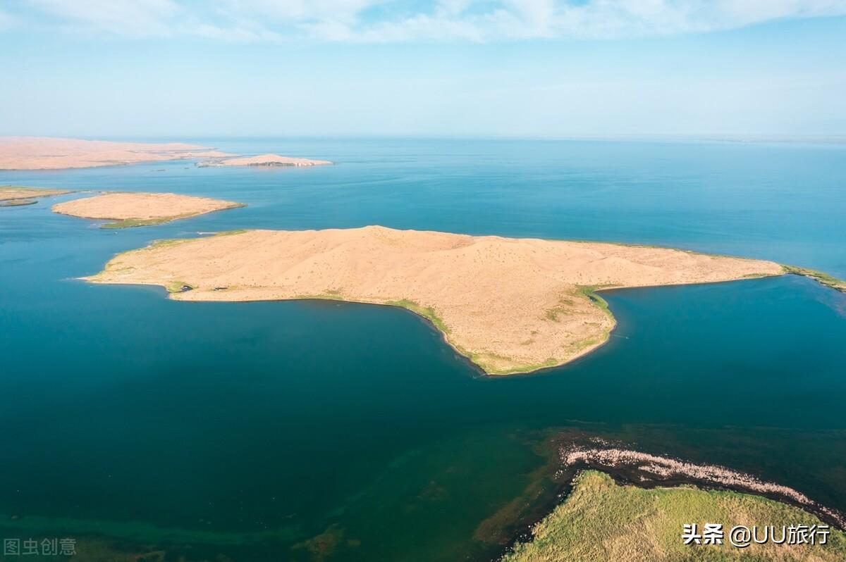 在庫爾勒市以東,我們能看到一個巨型的內陸湖泊,這是中國最大的淡水吞吐湖,博斯騰湖。在地圖上,這里更像是新疆最中心的位置。天山的冰雪融水沿著不同的河流,經過山地和草原,最終匯入博斯騰湖。湖水清冽純潔,是往南之后的大型綠洲。