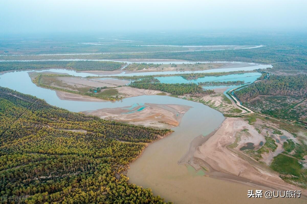 這里降水極少,水源幾乎靠河流補給,在塔里木河與流動沙漠相互的影響下,形成了很多的小型的沙漠湖泊,湖泊邊緣伴生著規模大小不同的胡楊林景觀,最好的季節是在秋季,金色的胡楊林和金色的沙漠。別有一番大漠的美感。原先的塔里木盆地邊緣有著一眾西域古國,隨著湖泊干涸,流動沙漠的侵蝕,樓蘭、且末、精絕等古國都消失在了風沙中。