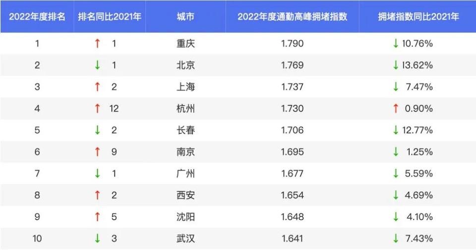 近日,百度地圖發布《2022年中國城市交通報告》榜單揭曉,吉林省長春市排名第五,前三名分別為重慶、北京和上海。重慶超過北京,成為2022年中國最擁堵城市。