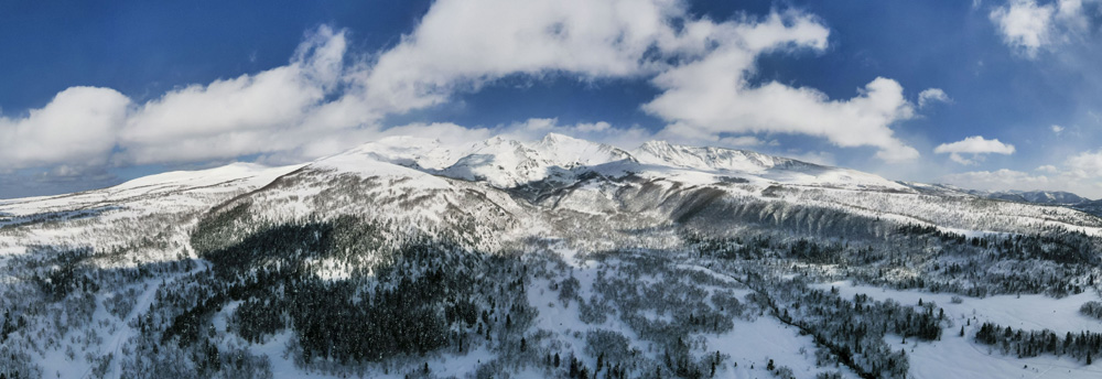 2023年2月8日,藍天白云下的長白山主峰(無人機照片)。新華社記者 許暢 攝
