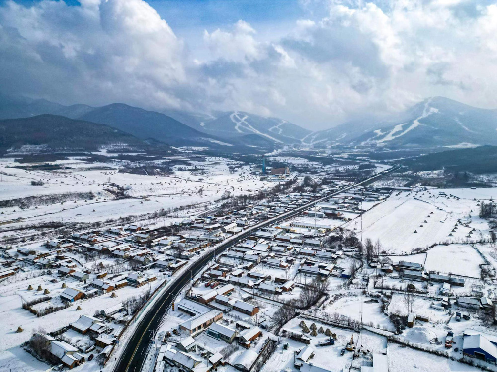 今年53歲的于淑芬是南溝村第一批農家樂經營者。13年前,因經常有路過的“雪友”前來詢問哪里可以吃飯、住宿,讓本就冬日無事的于淑芬萌生了“何不自己開個餐館賺點家用”的想法。如今,經過一步步發展經營,她開辦的農家樂已頗具規模,每個雪季能夠營收數十萬元。“現在我們村里,冬天才是一年中最忙的時候。家家戶戶都在盼著下雪,雪越大,游客越多。”于淑芬說道。2023年1月19日,白雪覆蓋的吉林市永吉縣北大湖鎮南溝村(無人機照片)。新華社記者 顏麟蘊 攝