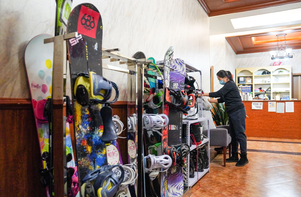 今年53歲的于淑芬是南溝村第一批農家樂經營者。13年前,因經常有路過的“雪友”前來詢問哪里可以吃飯、住宿,讓本就冬日無事的于淑芬萌生了“何不自己開個餐館賺點家用”的想法。如今,經過一步步發展經營,她開辦的農家樂已頗具規模,每個雪季能夠營收數十萬元。“現在我們村里,冬天才是一年中最忙的時候。家家戶戶都在盼著下雪,雪越大,游客越多。”于淑芬說道。2022年11月21日,于淑芬在農家樂住宿區打掃衛生。新華社記者 顏麟蘊 攝
