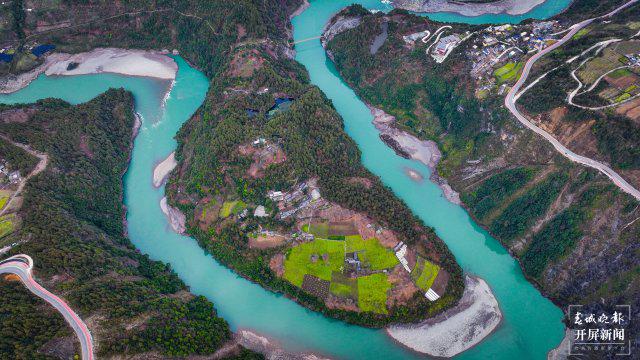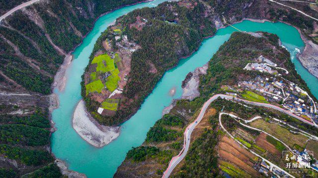 奔騰的怒江自北向南奔馳進(jìn)入怒江州貢山縣境內(nèi),到達(dá)日當(dāng)村附近,由于王箐大絕壁的阻隔,江水流向由北至南變?yōu)橛蓶|向西,流出300米后,又被丹打大山擋住去路,再次掉頭由西向東急轉(zhuǎn)。流經(jīng)丙中洛鎮(zhèn)坎桶村時(shí),轉(zhuǎn)了一個(gè)馬蹄形大彎,形成了半圓形弧狀灣,當(dāng)?shù)厝私小盎饖A”,被稱為“怒江第一灣”。該灣是隨著地殼的強(qiáng)烈抬升,原有的彎曲河流強(qiáng)烈下蝕形成的,屬于嵌入河曲類型。