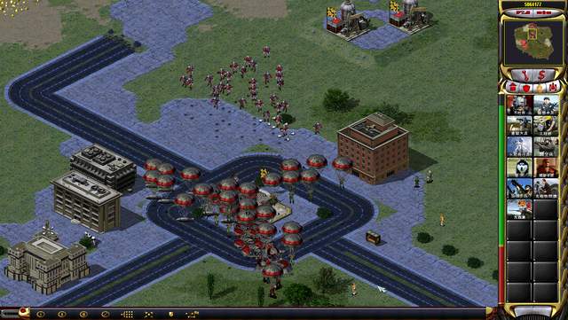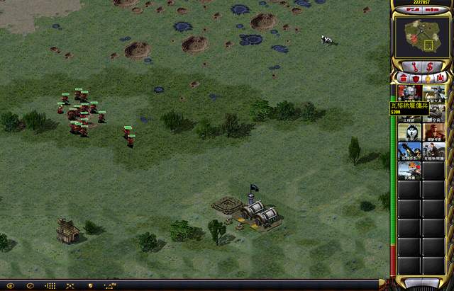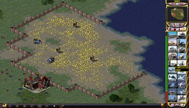 華沙出生點(diǎn)東面的礦區(qū)挺大,可惜沒有藍(lán)礦,加上鉆井也沒有,經(jīng)濟(jì)底子不是太好。幸虧我的基地車過來及時(shí),才用圍墻把北約的礦車給圍死了。不然它們沖過來找打,一旦敵軍全滅就沒辦法展示地圖了。