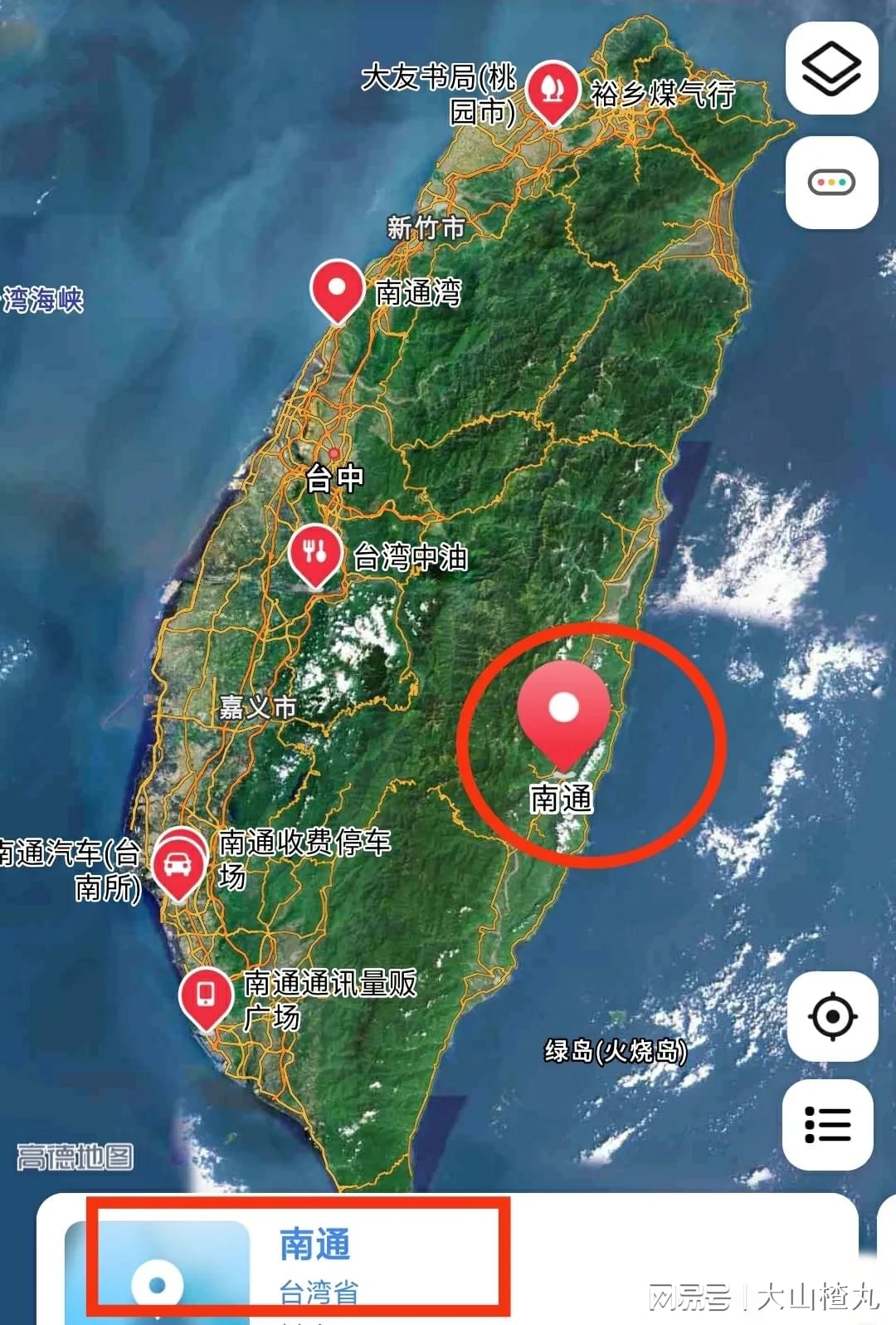當打開高德地圖,你會發現:從北到南,自東向西,南通的元素太多太多。比如:南通灣、臺灣中油在南通路,南通停車場、南通廣場、東側也有南通行政區域,而“江蘇南通如皋”的鄉鎮也叫桃園。