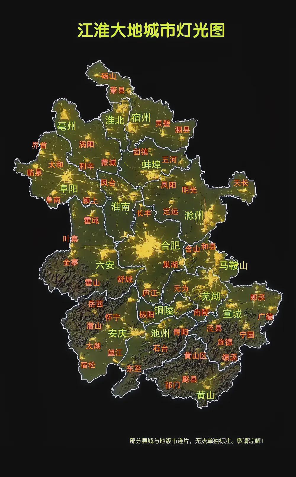 安徽城市夜間燈光圖!