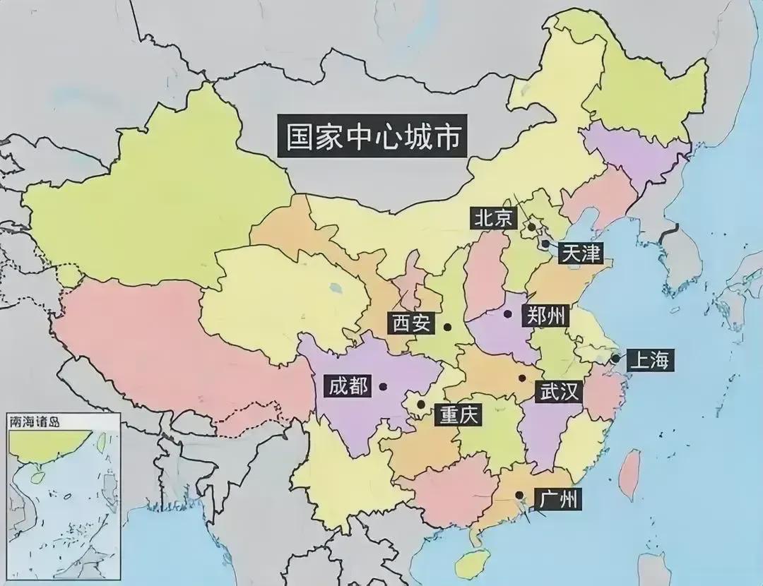 國家中心城市地圖分布,青島經濟一直是個很尷尬的存在!