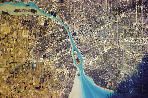 圖為美國密歇根州底特律(右)和加拿大安大略省溫莎(左),兩個國家只隔著一條河。