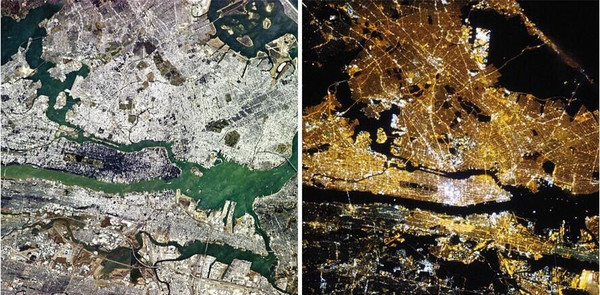 紐約曼哈頓每天在9:23醒來(左圖),3:45開始休息(右圖)。怪不得紐約被稱為“不眠之城”。