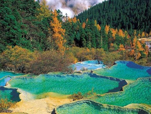 四川阿壩·黃龍,這里碧藍(lán)碧藍(lán)的水讓人心動(dòng),再有遠(yuǎn)處的茂密的森林,一切都像一幅畫(huà)!