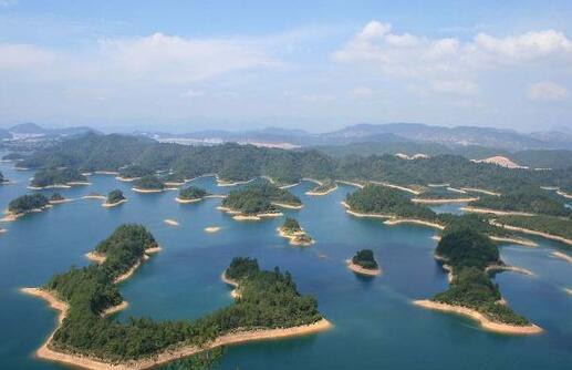 浙江千島湖,湖面上被分割成了一個(gè)個(gè)的小島,讓人覺(jué)得非常的奇特!小島上都是郁郁蔥蔥的綠色。