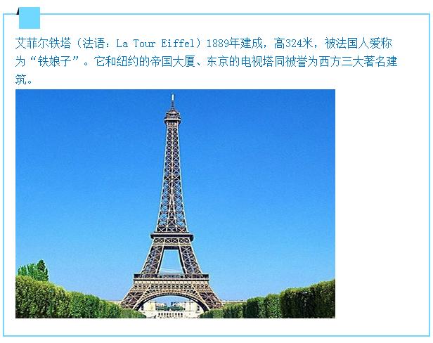 每個(gè)國(guó)家都有一個(gè)屬于自己國(guó)家的地理標(biāo)志,了解一個(gè)國(guó)家的地理標(biāo)志不僅能幫助孩子更好的了解一個(gè)國(guó)家。而且通過(guò)圖像記憶更能深層次加強(qiáng)孩子的記憶。