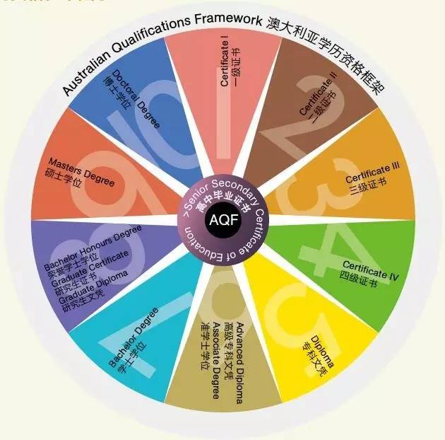 AQF分10個等級,它將高中教育、職業教育與大學教育的學歷資格評估整合為一個國家認證體系。只要符合學生簽證要求,就能通過這套框架從一個教育階段進入下一階段、從一個院校升讀另一院校。此外,它還為學生提供了更多職業選擇,加大職業規劃的靈活性。