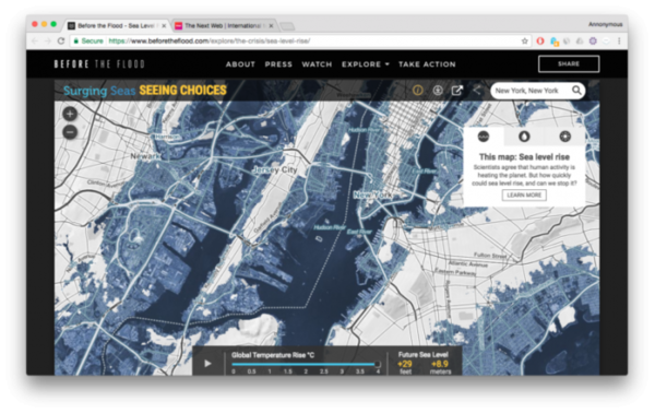 據(jù)介紹,用戶可以在環(huán)保紀(jì)錄片《洪水泛濫之前》(Before the Flood)的網(wǎng)站找到這個(gè)交互式地圖。 《洪水泛濫之前》由小李子由萊昂納多·迪卡普里奧擔(dān)任制片及主持,并采訪了美國(guó)前總統(tǒng)奧巴馬和特斯拉CEO埃隆·馬斯克等人。