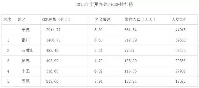 附圖:2015年寧夏各地GDP排行,來源于網絡