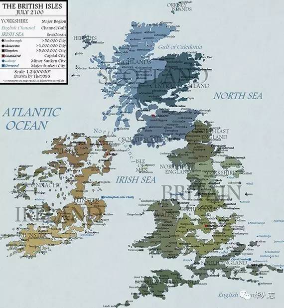 這份報告是由斯洛伐克圖形藝術家Jason Simons創作的,他多年致力于世界地理研究并因其“網絡上的世界地圖”系列而享譽世界。最近他開始著手創作“2100年的世界地圖”系列,“2100年的英國與愛爾蘭”是此系列的第一部作品。
