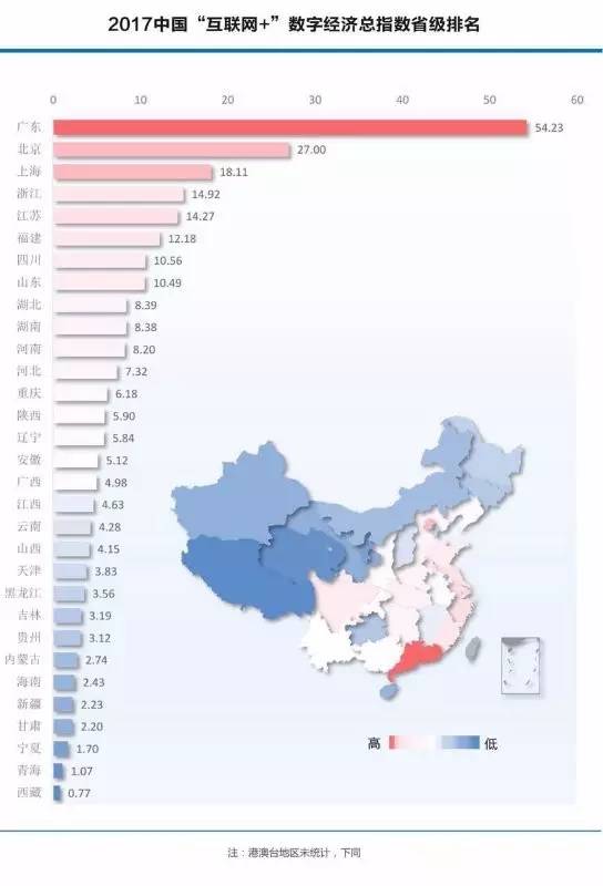 2017中國“互聯網+”數字經濟總指數省級排名↓↓