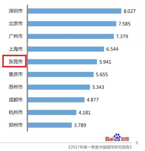 老說東莞不行的人,這次又要被打臉了。百度地圖發布最近發布的《2017年第一季度中國城市研究報告》中,東莞又上榜了,而且是進入前10名。