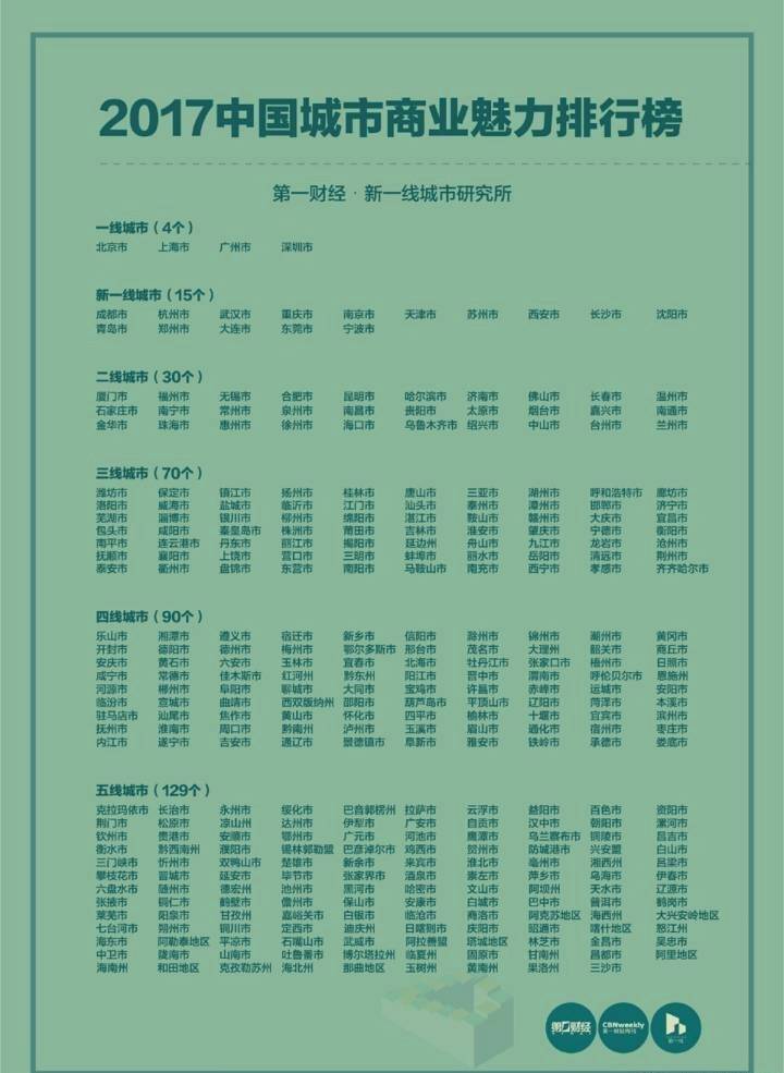 近日,《第一財經周刊》發布了《2017年中國城市商業魅力排行榜》。338個中國地級以上城市根據數據評估重新分級。
