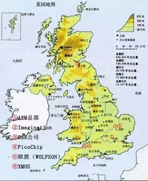 英國電子產業的核心部分是其突出的研發創新能力,研發中心多集中于大學校園區。英國約有70所高校參與半導體設計研究。電子類科技創新公司主要集中于劍橋地區、蘇格蘭地區、英格蘭東北部和南安普頓等地區。ARM的前身Acorn RISC Machine就是在劍橋成立的。一流的高校是高科技企業的基礎,從地圖中可以看出,這些一流的大學點綴著英國的整個版圖。