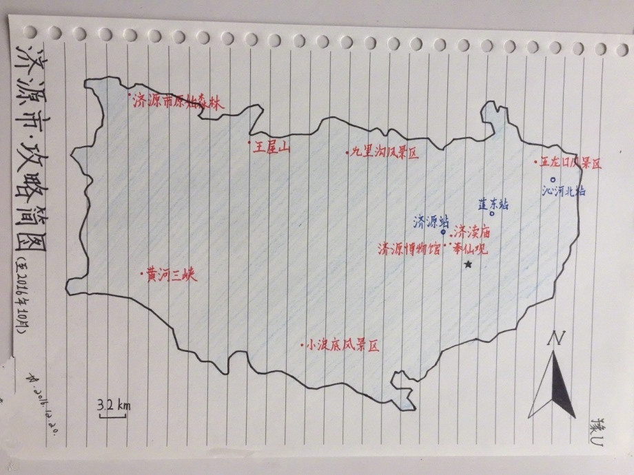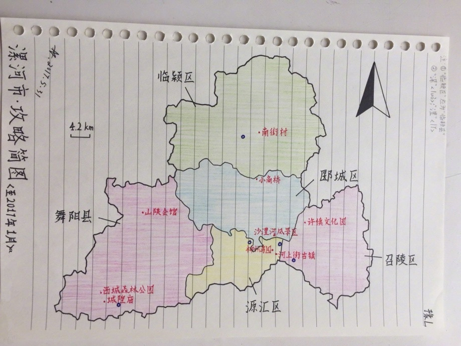 三門峽市攻略簡圖,為方便一張紙上呈現,作者繪圖方式頗具創意和設計。