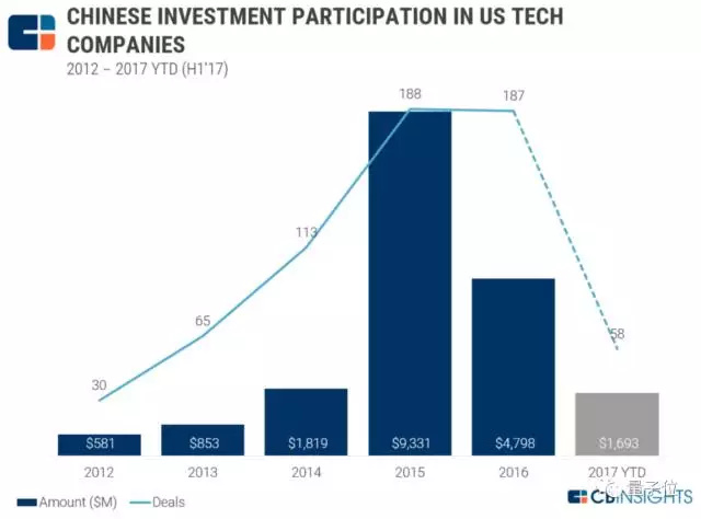 基于上述背景,最近知名風投數據公司CB Insights進行了一次詳盡的分析,直觀分析了中國投資者過去5年參與了多少美國科技行業投資,以及中國投資者最感興趣的技術。這份全景圖式的報告表明: