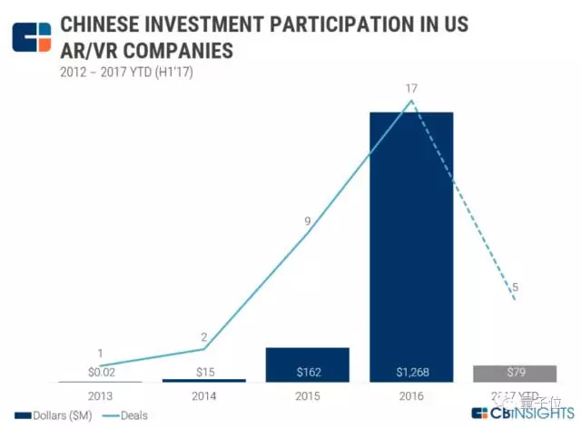 中國媒體和娛樂行業的戰略投資者非常活躍,包括華誼兄弟、優酷土豆和上海文廣。總體而言,除了Magic Leap之外,中國投資者參與了6筆金額超過5000萬美元的AR/VR投資交易,包括Unity Technologies(1.81億美元C輪融資,中投公司、峰瑞資本、華山資本參與)、NextVR(8000萬美元B輪融資,中信國安、中國資本、華人文化、方正和生、網易資本參與)和Jaunt(6500萬美元C輪融資,華人文化參與)。