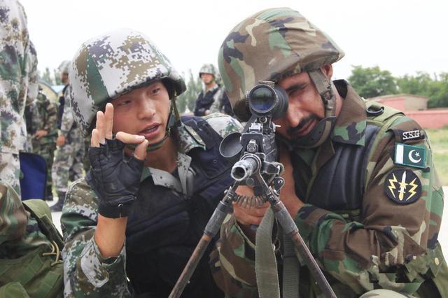 兩個的士兵在邊防親如兄弟,還會一起參加許多活動,例如上圖中這個巴基斯坦的士兵在瞄準,中國的士兵在一旁幫忙。