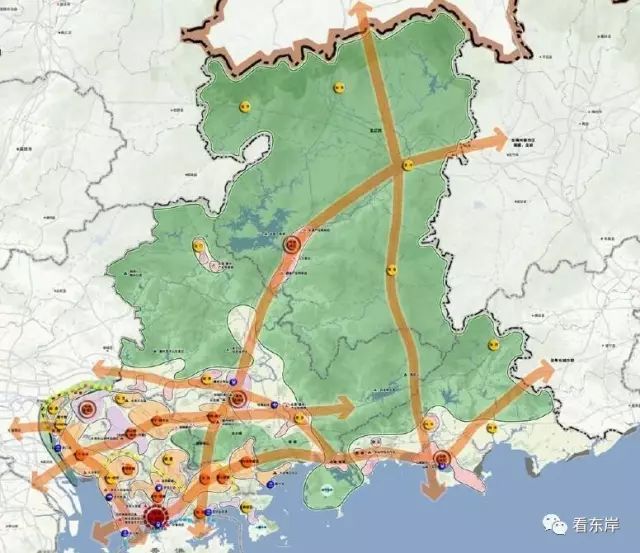 此次省新型城鎮化規劃明確提出,建設珠三角國際一流灣區和世界級城市群。韶關、河源、汕尾、陽江、清遠、云浮等環珠三角城市深度融入珠三角,基本形成三大新型都市區。具體到珠江東岸,將打造“深莞惠+河源、汕尾”大都市區。