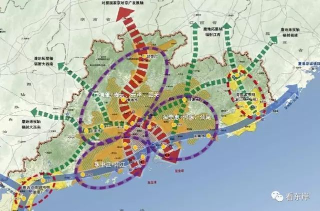 在空間發展上,該規劃提出,打造珠海主城區—深圳主城區—龍崗—坪山—惠陽—大亞灣—稔平半島—汕尾城區—汕潮揭城鎮群軸帶。