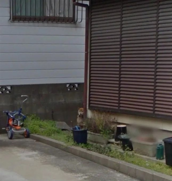 還有人在自己家的墻角,看見了兩年前去世的狗狗,它正躲在角落暗中觀察,沒想到這一幕被谷歌街景記錄了下來。